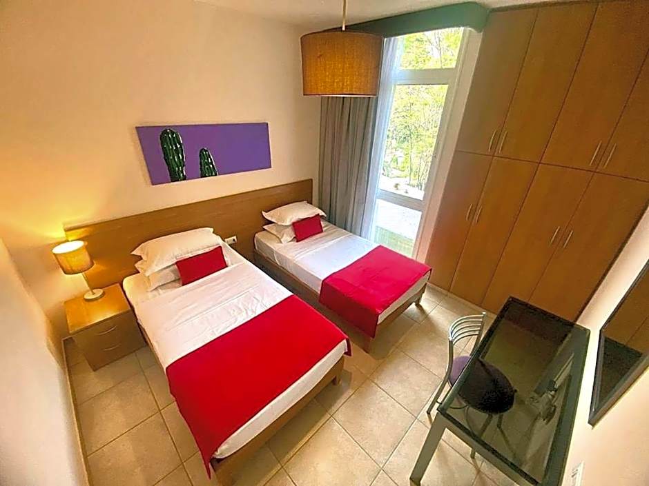 The air-conditioned suite has 1 bedroom and 1 bathroom with a shower and a bidet. Guests can make meals in the kitchen that features a stovetop, a refrigerator, kitchenware and a microwave. The suite features a flat-screen TV with satellite channels, soundproof walls, a mini-bar, a seating area as well as city views. The unit has 2 beds.
